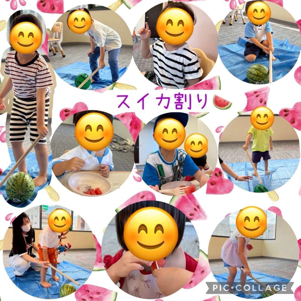 8月7日(木)のイベント【空間認知】スイカ割りの様子です🍉