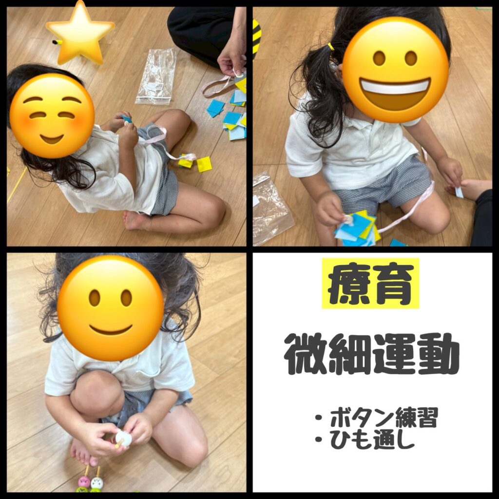 微細運動を通して、日常生活に必要な指先の操作、目と手の協調性を育ます♪