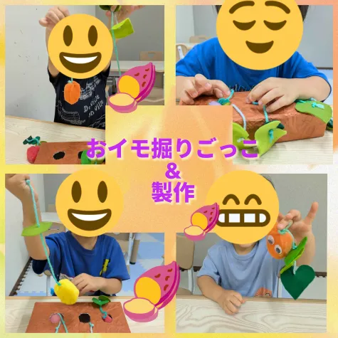 本日10/19(日)のイベントはお芋掘りごっこ&お芋製作を行いました🍠
