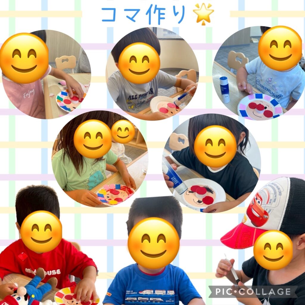 完成したアンパンマンのコマを持ち、ニコニコ笑顔で回して遊ぶ様子も見られましたよ😊✨