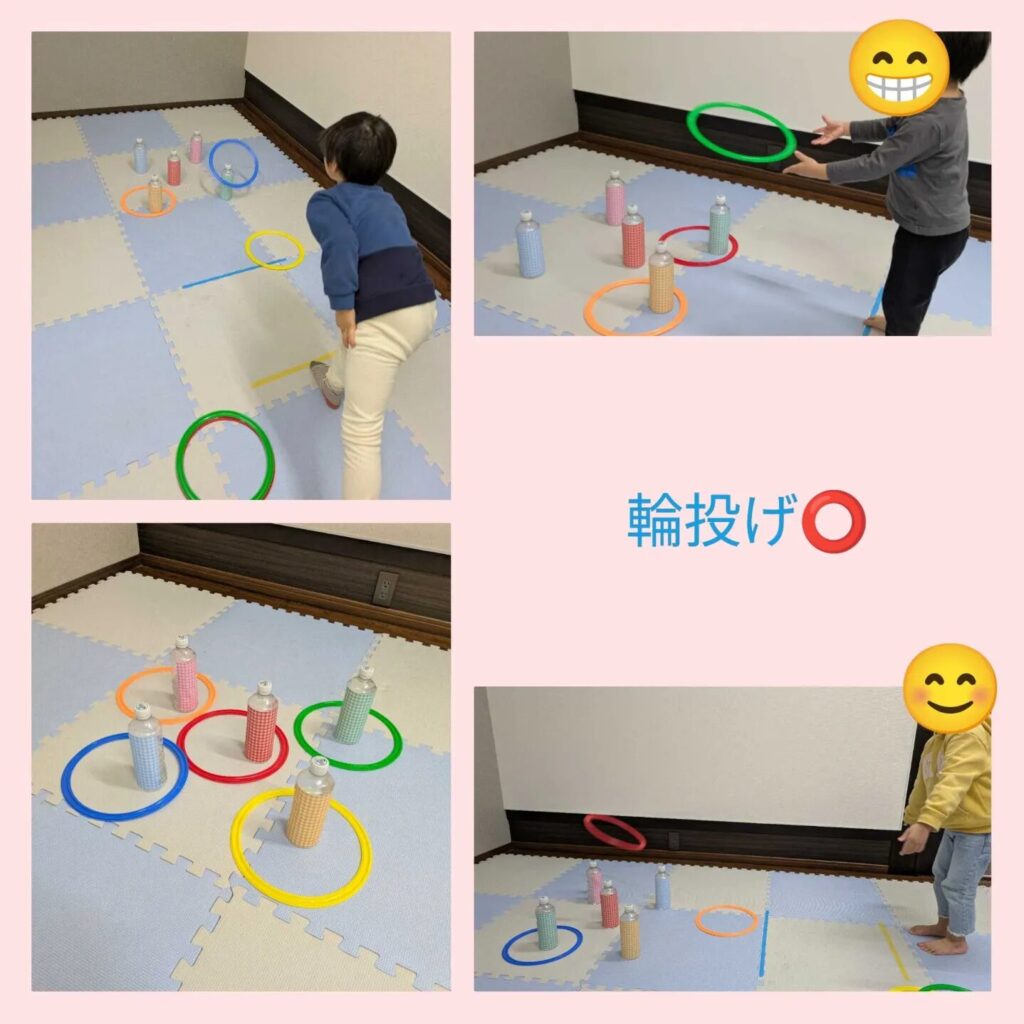 上手に輪を投げて入れる子もいれば、力が弱く的に届かなかった子も…😅職員と一緒に投げる練習をし、何度も繰り返し挑戦してくれ最終的には皆さん的に入れることができました😁✨️