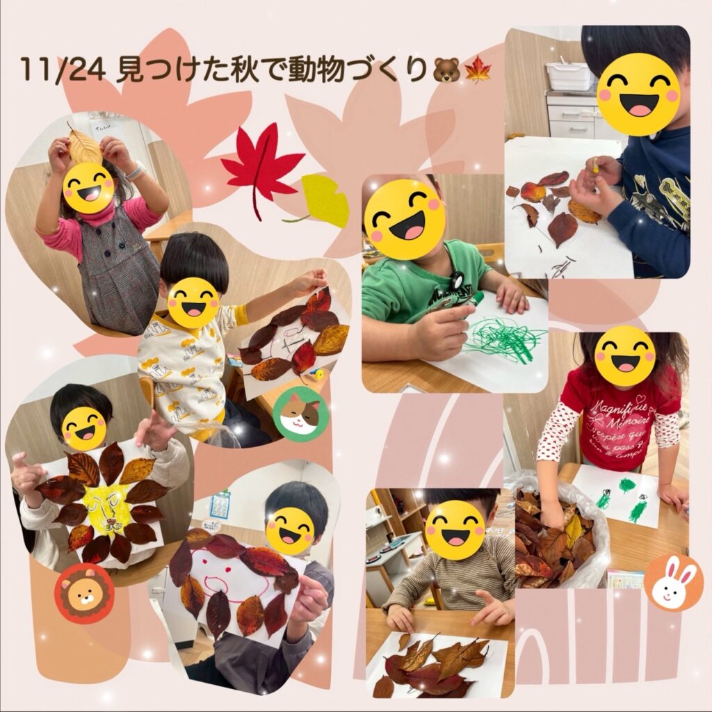 11月24日(月)は「見つけた秋で動物づくり」を行いました🍁