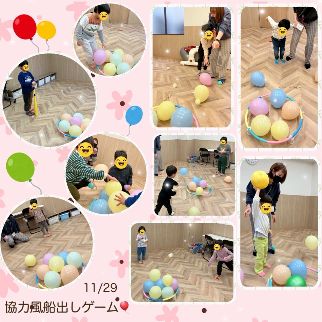 11月29日(土)は「協力風船出しゲーム」を行いました🎈