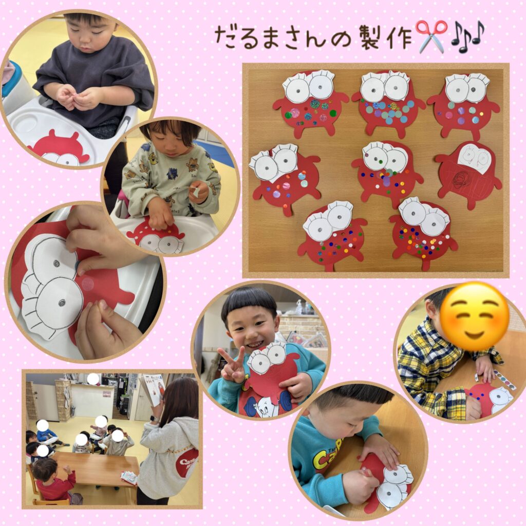 絵本に出てくる、目が大きくてかわいいだるまさん👀を思い浮かべながら、「これ、だるまさんやんな!」「見たことある〜!」と楽しそうにお話しする姿が見られました💗
