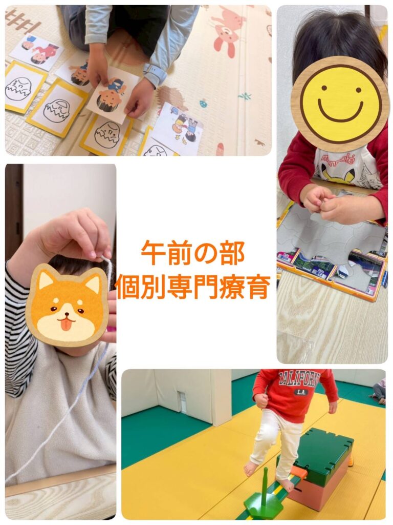 午前の部は「個別専門療育」ということで、児童さん一人一人の課題に合わせてプログラムを提供しています。