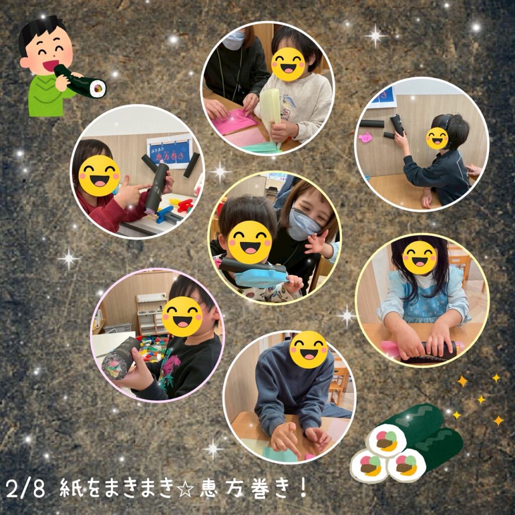 2月8日(日)は「紙をまきまき⭐️恵方巻き」を行いました🌀