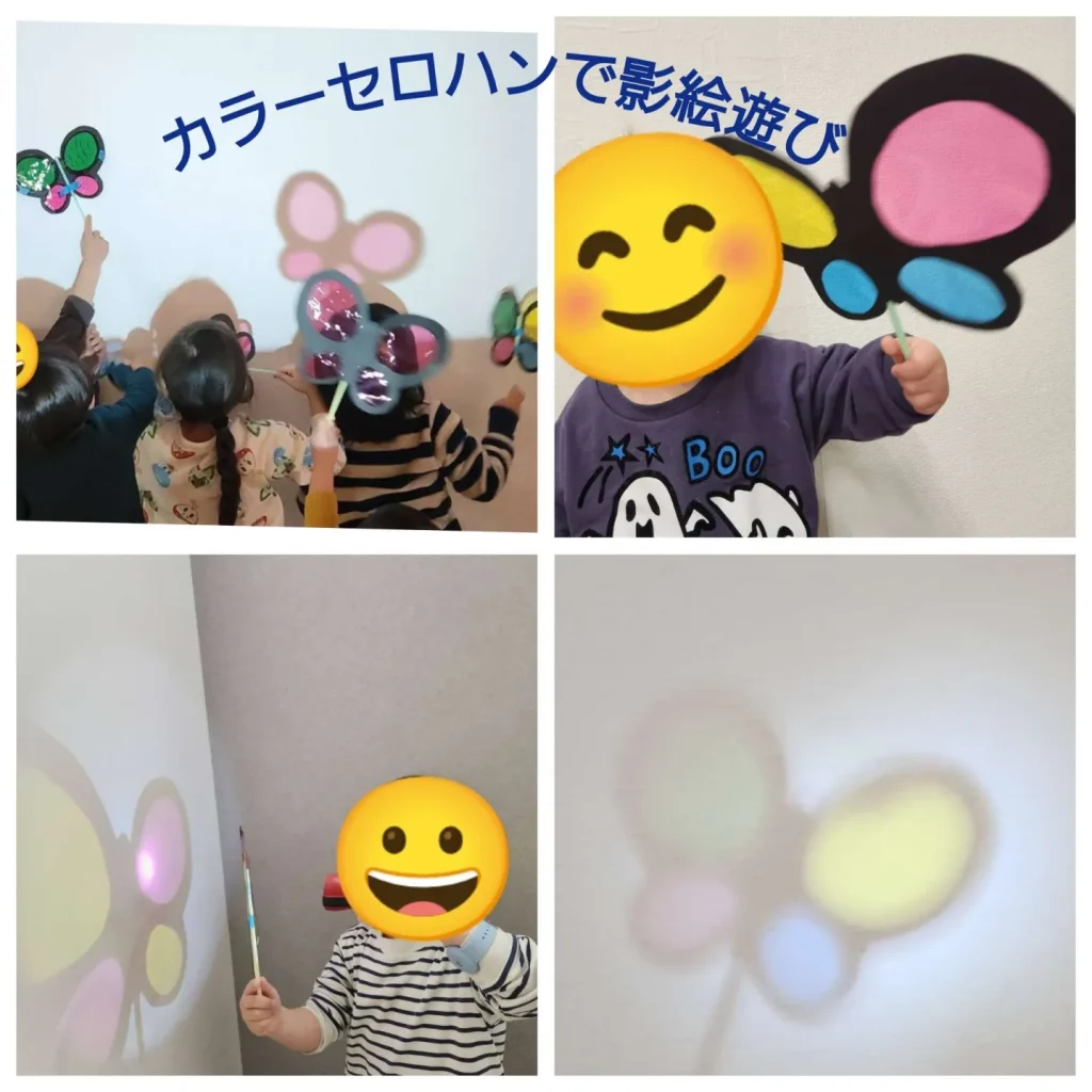 ちょうちょを動かすと、影の見え方も変わるので色々実験するお友達もいました👏