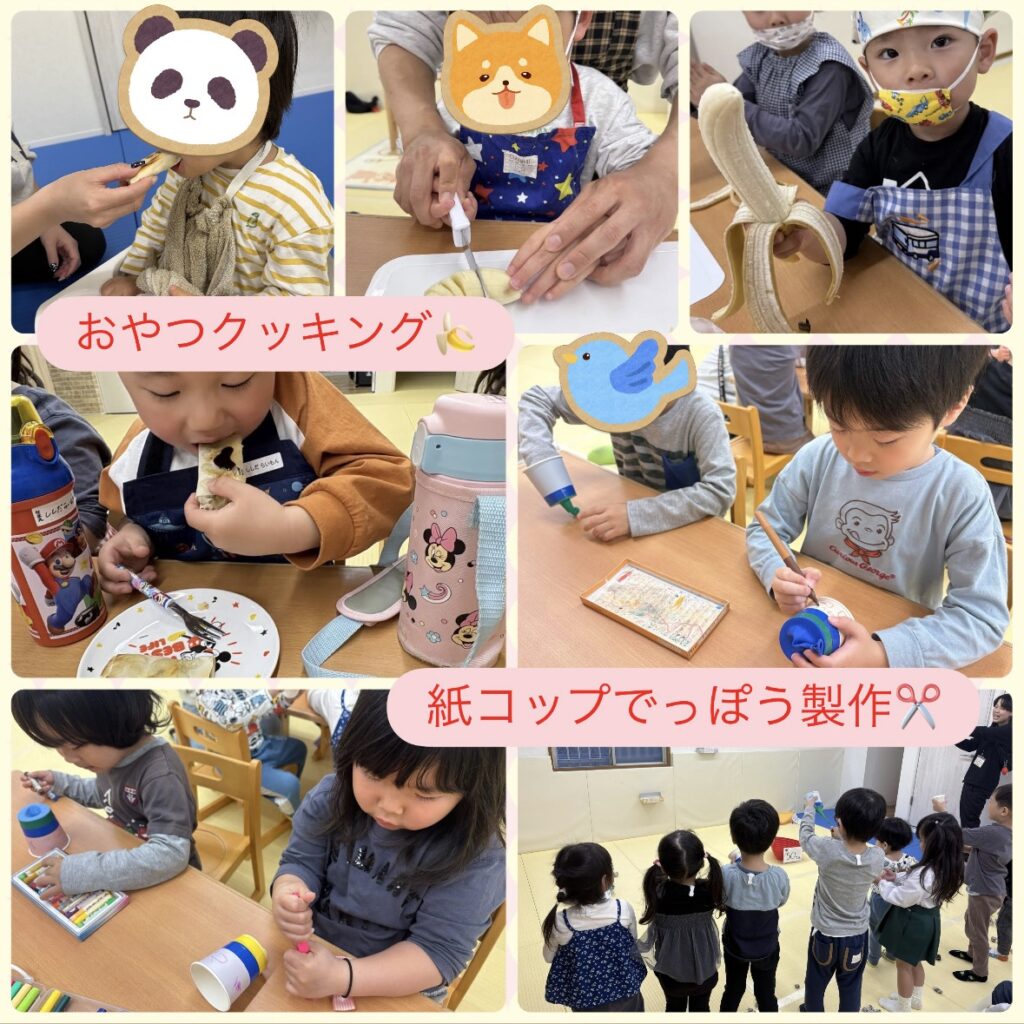 今回は《紙コップでっぽう製作✂️&おやつクッキング🍌》の様子をご紹介します💁♀️