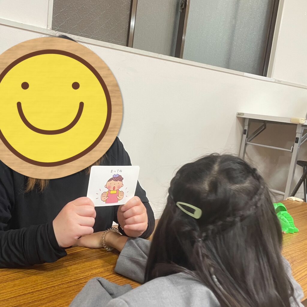 スタッフがカードを見せると、しっかりと目を向けて考える様子が見られ、「こういう時に使うんだね」と理解を深めている姿が印象的でした😊