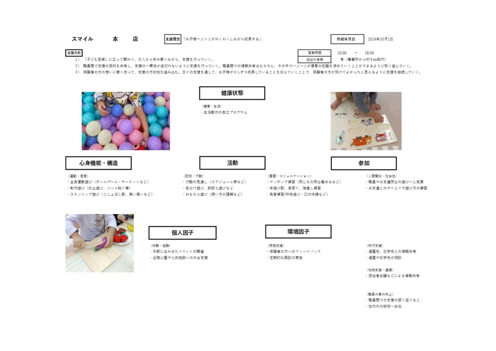 その後は療育施設や公園に遊びにいったり、好きな遊びをしたりして余暇を楽しみます。